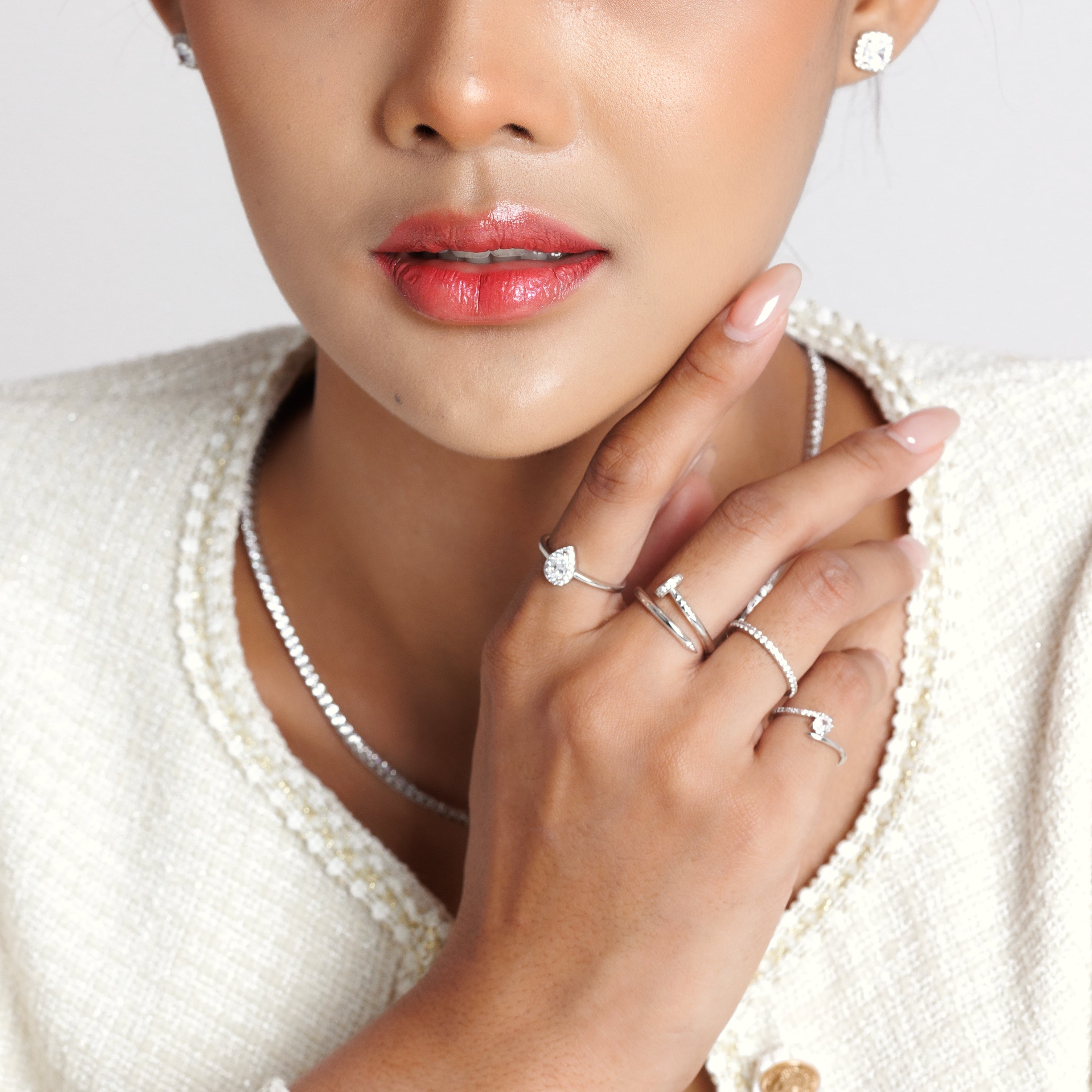 Our jewellery range includes classic and contemporary styles. Whether you're choosing sparkling earrings, cluster rings, diamond heart necklaces, delicate bracelets, a timeless CZ diamond tennis necklace, or a meaningful ring, our collections cater to every woman. Each piece can be worn alone or layered to create a unique look.